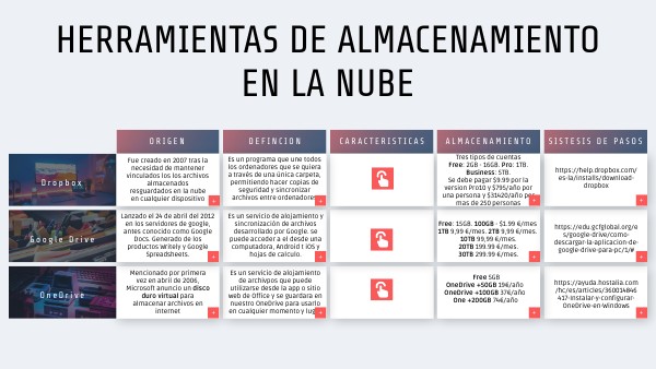 Elaboración de cuadro comparativo de herramientas de almacenamiento.
