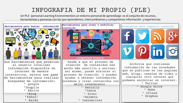 Un PLE (personal Learning Environment)es un entorno personal de aprendizaje es el conjunto de recursos, herramientas y personas con las que aprendemos, intercambiamos y compartimos información y experiencias
