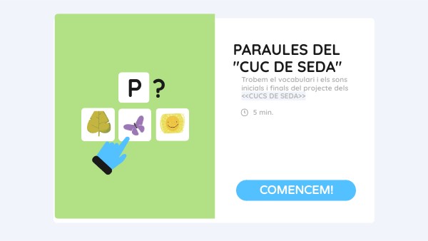 Trobem el vocabulari i els sons inicials i finals del projecte dels <<CUCS DE SEDA>>