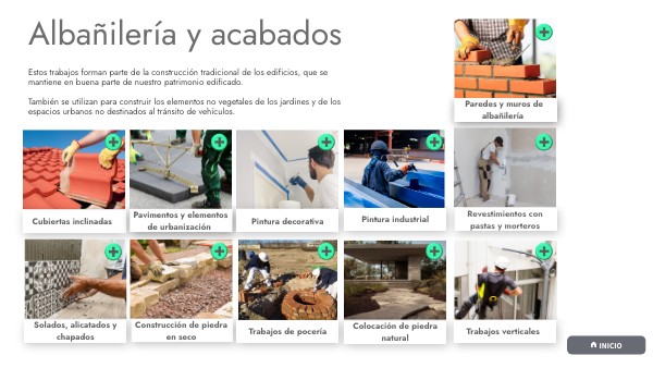 Las paredes y los muros de albañilería se encuentran, tradicionalmente, en las fachadas de edificios o en los tabiques que separan sus espacios interiores. También se utilizan para construir muros y mobiliario de jardines, plazas y espacios públicos urbanos. Estos elementos, también conocidos como fábricas de albañilería, pueden ser construidos con ladrillos, bloques de hormigón o piedras, que se unen entre sí con mortero. Además, pueden construirse para ir vistos o revestidos con enfoscados, revocos, aplacados… Las fábricas de albañilería tienen muchas ventajas. Envejecen bien, son duraderas y mantienen buenas propiedades a pesar del paso del tiempo, y pueden ser muy resistentes. En la actualidad, se está avanzando mucho en la innovación de materiales de construcción que mejoran ciertas características de los ladrillos y los bloques, como su resistencia, aislamiento térmico, regulación de la temperatura, absorción de contaminantes, etc. La construcción de paredes y muros de albañilería requiere habilidad y maestría, con el fin de garantizar su estabilidad y resistencia. Los profesionales que levantan las fábricas de albañilería son los/las albañiles y las/los albañiles caravisteros.