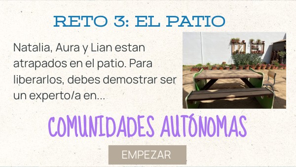 Natalia, Aura y Lian estan atrapados en el patio. Para liberarlos, debes demostrar ser un experto/a en...