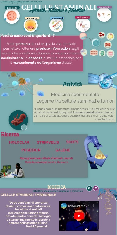 Fonte primaria da cui origina la vita, studiarle permette di ottenere preziose informazioni sugli eventi che si verificano durante lo sviluppo umano;costituiscono un deposito di cellule essenziale per il mantenimento dell’organismo stesso