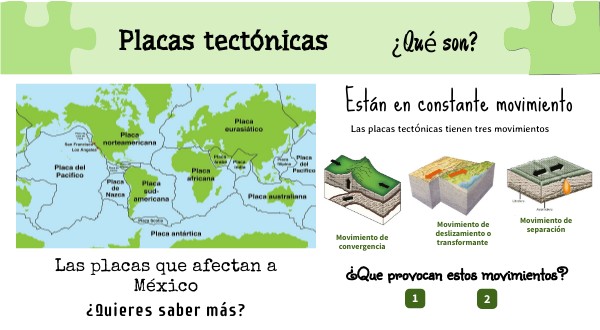 Se aborda el tema de las placas tectónicas, sus movimientos y consecuencias que producen