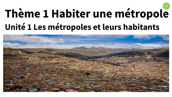 Thème 1 Habiter une métropole