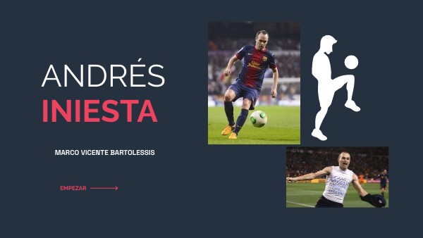 Andrés Iniesta Luján es un futbolista y licenciado en Ciencias de la Actividad Física y del Deporte español que actualmente juega como centrocampista en el Vissel Kobe de la liga de Japón. Años atrás ha estado jugando el en Fc Barcelona y en la selección española, equipos en los que fue capitán. También es el futbolista más laureado de la historia con un total de 39 títulos oficiales , así como uno de los mejores jugadores de la historia.