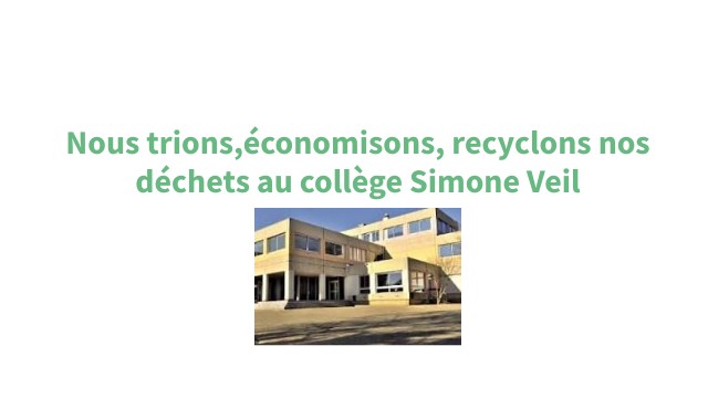 Nous trions,économisons, recyclons et valorisons nos déchets au collège Simone Veil