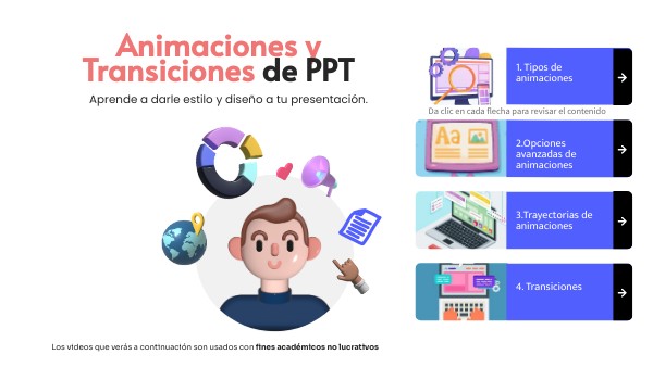 - La animación puede ayudar a que una presentación sea más dinámica y ayudar a que la información sea más memorable, revisa el sigueinte video para concerlas.