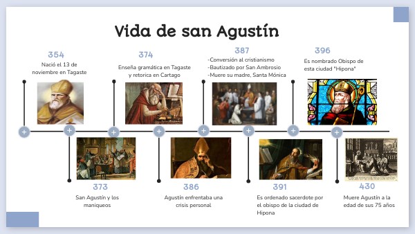 -Conversión al cristianismo-Bautizado por San Ambrosio -Muere su madre, Santa Mónica