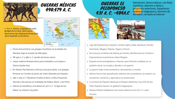 Se explica las la guerra médica y la guerra del Peloponeso, sus caracteristicas.