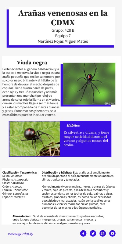 Clasificación Taxonómica: Reino: Animalia Phylum: Arthropoda Clase: Arachnida Orden: Araneae Familia: Theridiidae Género: Latrodectus Especie: mactans