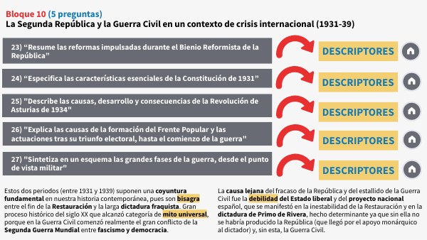 Bloque 10 (5 preguntas) La Segunda República y la Guerra Civil en un contexto de crisis internacional (1931-39)