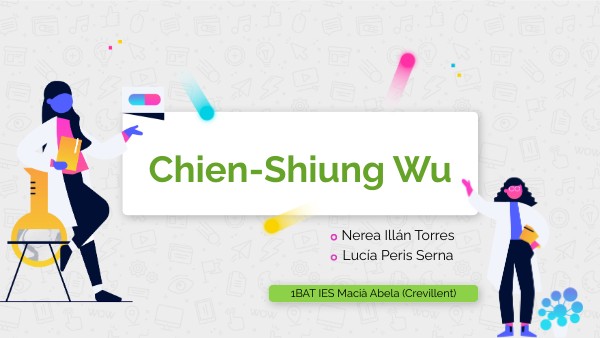 ‘ILECARA’ (2012). “Siglo XX – Chien-Shiung Wu” en Mujeres que Hacen la Historia. <https://mujeresquehacenlahistoria.blogspot.com/2012/01/siglo-xx-chien-shiung-wu.html> [Consulta: 21 de abril de 2023] <https://www.pinterest.cl/pin/86553624075157273/> [Consulta: 21 de abril de 2023] <https://www.pinterest.cl/pin/86553624075157273/> [Consulta: 21 de abril de 2023] 'Sergey' (2022). "Cómo la Universidad de Nankín integró ONLYOFFICE Docs para mejorar la colaboración entre profesores y estudiantes" en ONLYOFFICE Workspace 12.5. <https://www.onlyoffice.com/blog/es/2022/12/la-universidad-de-nankin-y-onlyoffice-docs/> [Consulta: 21 de abril de 2023] WIKIPEDIA (2019). "Archivo: Chiang Kai-shek in full uniform". <https://es.m.wikipedia.org/wiki/Archivo:Chiang_Kai-shek_in_full_uniform.jpeg> [Consulta: 21 de abril de 2023] Margarita Rodríguez (2022). "Quién era Chien-Shiung Wu, la “Marie Curie china” y cuál fue su revolucionario legado a la física" en LA NACION. <https://www.lanacion.com.ar/el-mundo/quien-era-chien-shiung-wu-la-marie-curie-china-y-cual-fue-su-revolucionario-legado-a-la-fisica-nid26062022/> [Consulta: 21 de abril de 2023] PÉREZ, P. (2023) “Chien-Shiung Wu, la creadora del Experimento de Wu” en Zenda. Autores, Libros y Compañía. <https://www.zendalibros.com/chien-shiung-wu-la-creadora-del-experimento-de-wu/> [Consulta: 21 de abril de 2023] MOGROVEJO, X. (2022) “Oppenheimer: ¿Qué fue el Proyecto Manhattan? ¿Quién inventó la bomba atómica?” en Vandal. <https://vandal.elespanol.com/noticia/r14987/oppenheimer-que-fue-el-proyecto-manhattan-quien-invento-la-bomba-atomica> [Consulta: 21 de abril de 2023] MUCHNIK, D. (2020) “El Proyecto Manhattan o cómo surgió la bomba atómica” en el Auditor info. <https://elauditor.info/actualidad/el-proyecto-manhattan-o-como-surgio-la-bomba-atomica_a5f15af5f6b53fc3c338ec007> [Consulta: 21 de abril de 2023] WIKIPEDIA. (2022) “Desintegración beta” <https://es.wikipedia.org/wiki/Desintegraci%C3%B3n_beta> [Consulta: 21 de abril de 2023] YOUTUBE, “Conservación del momento lineal (p) en una explosión” en Youtube. <https://youtu.be/wD8n-5uS998> [Consulta: 21 de abril de 2023] ANÓNIMO, (2021) “Chien Shiung Wu, la mujer que revolucionó la física pero no tuvo Nobel” en Mujeres en la Sombra. <https://mujeresenlasombra.com/chien-shiung-wu-mujer-cambio-mundo-fisica/> [Consulta: 21 de abril de 2023] ANÓNIMO, (2020) “10 curiosidades sobre los Premios Nobel de Química que desconocías” en Soluquisa S.A. <https://soluquisa.es/10-curiosidades-sobre-los-premios-nobel-de-quimica-que-desconocias/> [Consulta: 21 de abril de 2023] RIVAS, A. (2020) “Chien-Shiung Wu: Una madre para la ciencia y para el mundo” en NICA Woman Tech. <https://womantechla.com/2020/06/15/chien-shiung-wu-una-madre-para-la-ciencia-y-para-el-mundo/> [Consulta: 21 de abril de 2023]