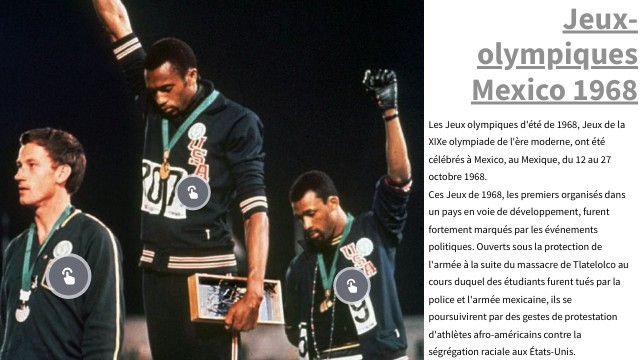 Carlos et Smith deviennent célèbres en tendant leur poings gantés de noir afin de symboliser l'unité du peuple noir à la cérémonie de remise des médailles le 17 octobre 1968. Les deux athlètes montent sur le podium en chaussettes noires sans chaussures afin de dénoncer le racisme envers les Noirs aux États-Unis. John Carlos porte un collier en référence aux lynchages des Noirs dont ceux du Sud ont été très longtemps victimes