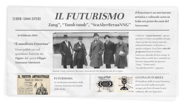 Il futurismo è un movimento artistico e culturale sorto in Italia nei primi decenni del Novecento