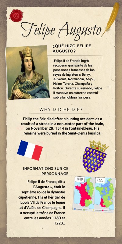 Felipe II de France, dit « L'Auguste », était le septième roi de la dynastie capétienne, fils et héritier de Louis VII de France le Jeune et d'Adèle de Champagne. Il a occupé le trône de France entre les années 1180 et 1223..