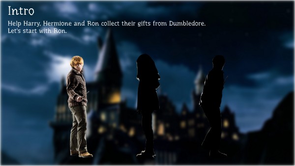 Help Harry, Hermione and Ron collect their gifts from Dumbledore.Let's start with Ron.