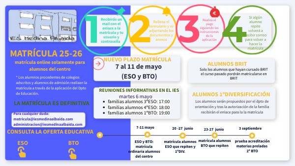 Para cualquier duda:matricula@iesmedinaalbaida.comadministracion@iesmedinaalbaida.com
