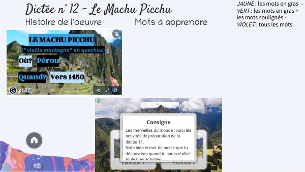 JAUNE : les mots en gras - VERT : les mots en gras + les mots soulignés - VIOLET : tous les mots