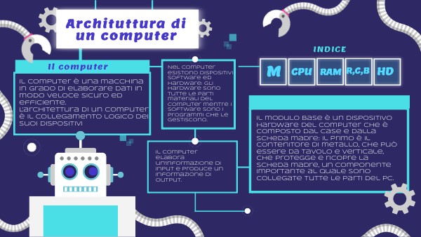 Il computer è una macchina in grado di elaborare dati in modo veloce sicuro ed efficiente. L'architettura di un computer è il collegamento logico dei suoi dispositivi
