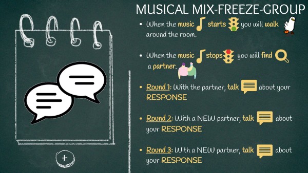 - Round 3: With a NEW partner, talk about your RESPONSE