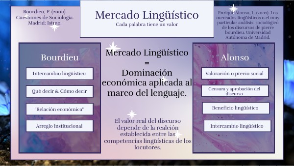 Enrique Alonso, L. (2002). Los mercados lingüísticos o el muy particular análisis sociológico de los discursos de pierre bourdieu. Universidad Autónoma de Madrid.