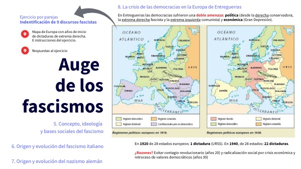 5. Concepto, ideología y bases sociales del fascismo 6. Origen y evolución del fascismo italiano 7. Origen y evolución del nazismo alemán