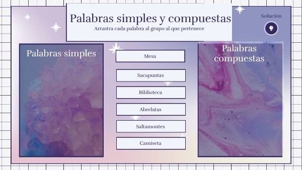 Arrastra cada palabra al grupo al que pertenece