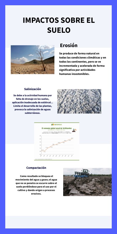 Se debe a la actividad humana por falta de drenaje en los suelos, aplicación inadecuada de estiércol...Limita el desarrollo de las plantas, provoca la salinización de aguas subterráneas.