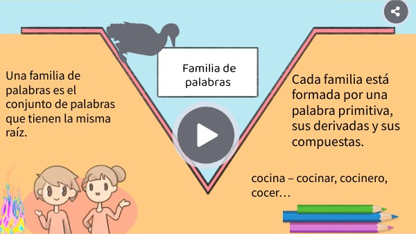 Cada familia está formada por una palabra primitiva, sus derivadas y sus compuestas.