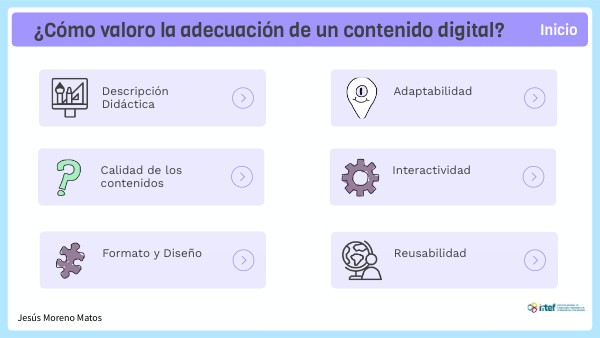 El medio educativo presenta una clara organización, es intuitivo. Presenta medios audiovisuales de calidad que facilitan el aprendizaje y añaden dinamismo. Contiene múltiples formatos (texto, imagen, audio o vídeo). La información e instrucciones que detalla son precisas. El medio es también personalizable.