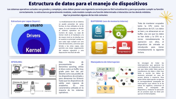 Los sistemas operativos actuales son grandes y complejos, estos deben poseer una ingeniería correcta para su fácil actualización y para que puedan cumplir su función correctamente. La estructura es generalmente modular, cada modulo cumple una función determinada e interactúa con los demás módulos. Aquí se presentan algunas de las más comunes: