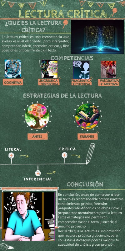 En esta infografía, exploraremos las competencias necesarias para la lectura crítica, las estrategias que involucra y las diferencias con otros niveles de lectura.