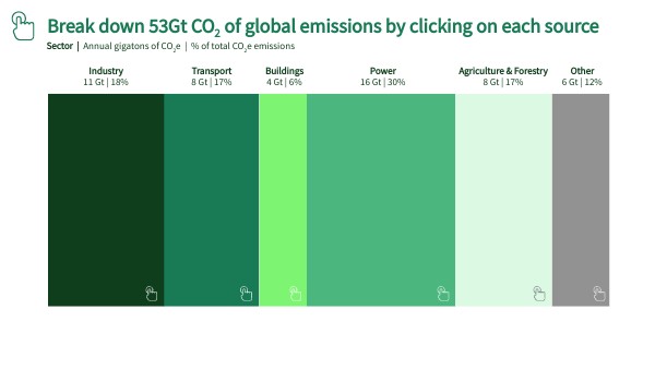 Break down 53Gt CO2 of global emissions by clicking on each source
