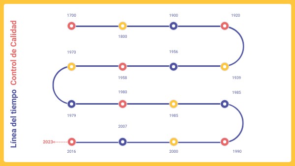 Una línea del tiempo resumida con algunos de los eventos que se consideraron más importantes en el desarrollo y evolución del control de calidad.
