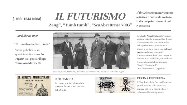 Il futurismo è un movimento artistico e culturale sorto in Italia nei primi decenni del Novecento