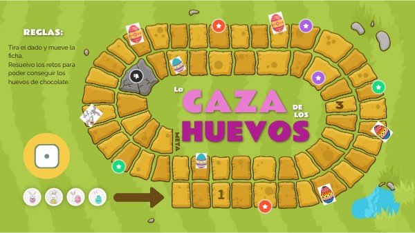 Tira el dado y mueve la ficha.Resuelvo los retos para poder conseguir los huevos de chocolate.