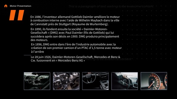 En 1886, l'inventeur allemand Gottlieb Daimler améliore le moteur à combustion interne avec l'aide de Wilhelm Maybach dans la ville de Cannstatt près de Stuttgart (Royaume de Wurtemberg).