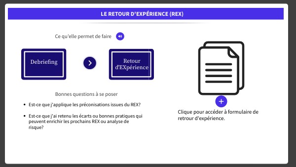 - Est-ce que j'ai retenu les écarts ou bonnes pratiques qui peuvent enrichir les prochains REX ou analyse de risque?