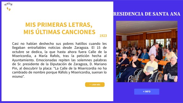 Casi no habían deshecho sus pobres hatillos cuando les llegaban entrañables noticias desde Zaragoza. El 15 de octubre se dedica, la que hasta ahora fuera Calle de la Misericordia, a María Rafols, tras la petición hecha al Ayuntamiento. Emocionadas repiten las solemnes palabras de Sr. presidente de la Diputación de Zaragoza, D. Mariano Pin, al descubrir la placa: “La Calle de la Misericordia no ha cambiado de nombre porque Ràfols y Misericordia, suenan lo mismo”.