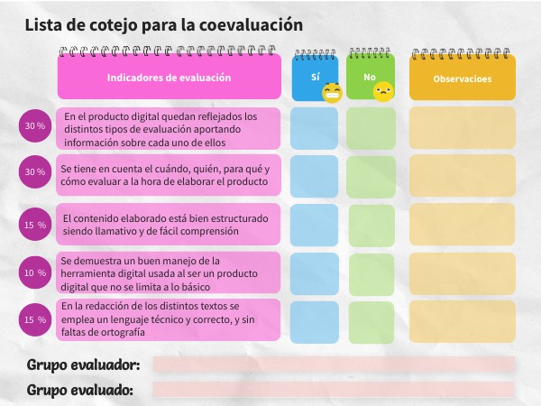 En el producto digital quedan reflejados los distintos tipos de evaluación aportando información sobre cada uno de ellos