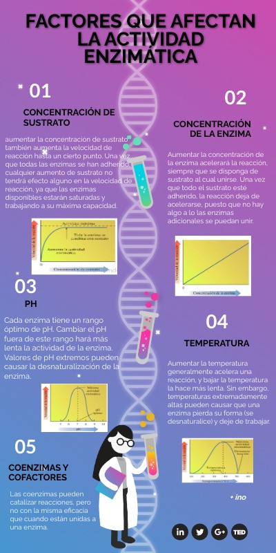 Aumentar la temperatura generalmente acelera una reacción, y bajar la temperatura la hace más lenta. Sin embargo, temperaturas extremadamente altas pueden causar que una enzima pierda su forma (se desnaturalice) y deje de trabajar.