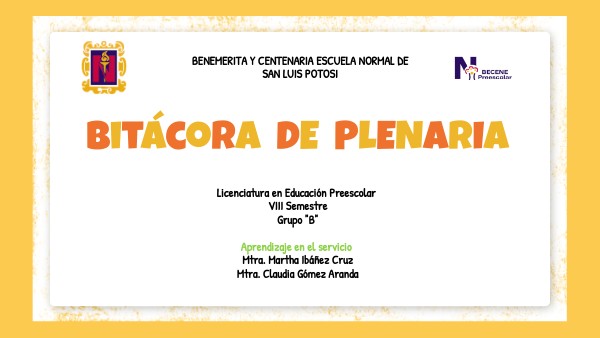 La Primera Plenaria de análisis y reflexión de la práctica docente fue llevada a cabo el día 29 de marzo de 2023 en un horario de 9:00 a 11:50 de la mañana, en la sala de directores. Está dio comenzó estando de pie tanto maestras como docentes en formación mediante lo cual se realizó un saludo cordial y de bienvenida a dicha actividad. Así mismo, por parte de la maestra Martha Ibáñez Cruz se comentó el propósito de la actividad así como la finalidad, misma que consta de nutrir la forma de expresión respecto a conocimientos, análisis y reflexión tanto de forma individual como colectiva. Además se especificó la orden de día referente a lo que se tenía programado haciendo énfasis sobre el uso de la tómbola para las participaciones respecto a los documentos de titulación. De acuerdo a esto, quien se encargó de dicha tómbola fue la maestra Claudia Gómez Aranda quien presento en un recipiente los números de lista de las docentes en formación del grupo de 4°B. De esta forma, al azar se eligieron diez números los cuales fueron registrados con la intención de mantener mayor orden de acuerdo a las participaciones establecidas, con base en esto, las alumnas expositoras fueron: