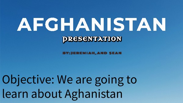 Objective: We are going to learn about Aghanistan