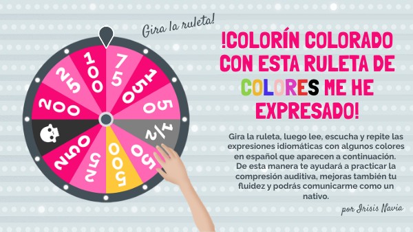 Este juego de la ruleta tiene como objetivo practicar la comprensión oral a partir del uso de locuciones idiomáticas y los colores.