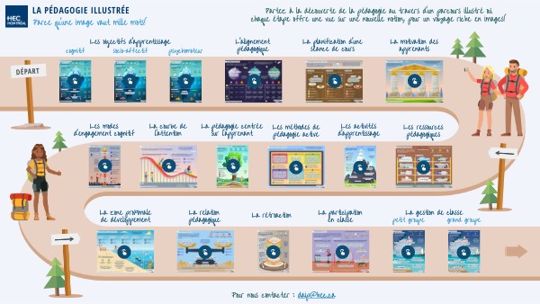 Partez à la découverte de la pédagogie au travers d'un parcours illustré où chaque étape offre une vue sur une nouvelle notion, pour un voyage riche en images!
