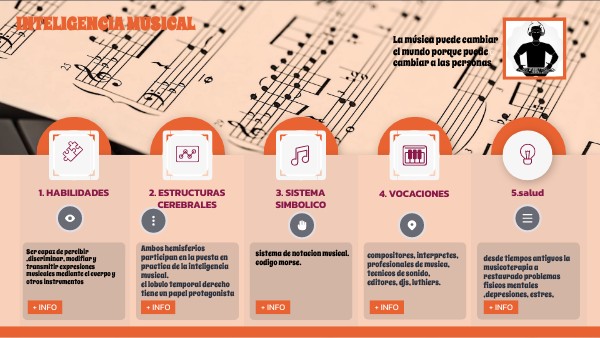 Ambos hemisferios participan en la puesta en practica de la inteligencia musical. el lobulo temporal derecho tiene un papel protagonista