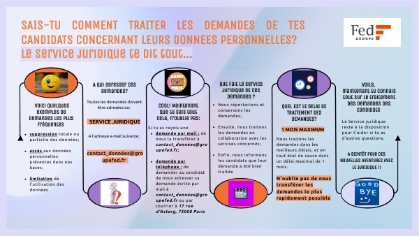 SAIS-TU COMMENT TRAITER LES DEMANDES DE TES CANDIDATS CONCERNANT LEURS DONNEES PERSONNELLES? le service juridique te dit tout...