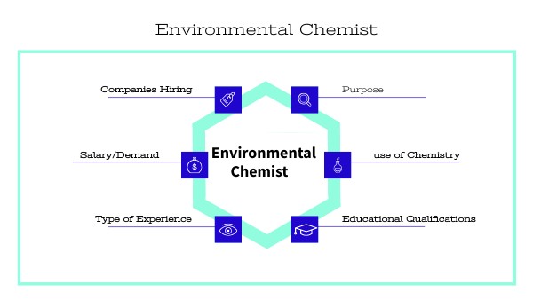 o Environmental chemist’s main focus is to make the best judgement in order to aid in conservation and sustainability. o They examine the air, water and soil to identify how a chemical enters an ecosystem and what effect they have, and how the environment is effected by humanity. o They use the measurements of the chemicals they find in these places to hypothesize what long-term effects these chemicals could have on organism populations, human and non-human, in the environment. o If they find a chemical to be hazardous, the chemical is disposed and the sight is repaired. o Environmental chemist can both work in field work, and work in a laboratory environment, using tools and devices to measure, interpret, and model data.