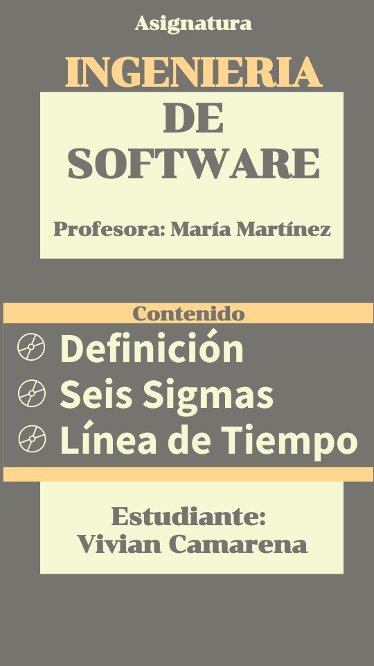 Colaboradores de Wikipedia. (2023, 29 marzo). Seis Sigma. Wikipedia, la enciclopedia libre. https://es.wikipedia.org/wiki/Seis_Sigma Herrera Acosta, R. J., & Fontalvo Herrera, T. J. (s. f.). Seis Sigma Métodos Estadísticos y Sus Aplicaciones. https://biblioteca.utec.edu.sv/siab/virtual/elibros_internet/55821.pdf López, B. S. (2021, 13 agosto). ¿Qué es Six sigma? Ingenieria Industrial Online. https://www.ingenieriaindustrialonline.com/gestion-de-calidad/que-es-six-sigma/ Piattini, M. (s. f.). Evolución de la Ingeniería del Software y la formación de profesionales. REVISTA INSTITUCIONAL DE LA FACULTAD DE INFORMÁTICA | UNLP, 4, 15-17. http://sedici.unlp.edu.ar/bitstream/handle/10915/57358/Documento_completo.pdf-PDFA.pdf?sequence=1#:~:text=D%C3%A9cada%20de%20los%202000.%20Se%20firma%20el%20%E2%80%9CManifiesto,de%20Software%20en%20la%20%E2%80%9Ccultura%E2%80%9D%20y%20t%C3%A9cnicas%20%C3%A1giles.