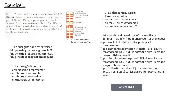 3) Le gène sur lequel porte l'exercice est situé : en haut du chromosome n°1 au milieu du chromosome n°1 en bas du chromosome n°1
